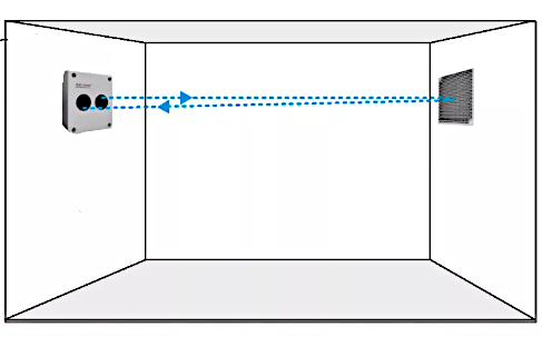 - Однокомпонентные. Более современные модели: излучатель и приемник расположены в одном корпусе, напротив них устанавливается отражатель («зеркало»).